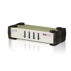 The CS84U PS/2-USB KVM Switch is a desktop control unit that allows users to access four computers from a single KVM console (PS/2 or USB keyboard and mouse, and VGA monitor). In addition, CS84U comes with ATEN’s new Video DynaSync technology, which eliminates boot-up display problems and optimizes resolution. Setup is fast and easy; simply plug cables into their appropriate ports. There is no software to configure, no installationroutines, and no incompatibility problems. Since the CS84U intercepts keyboard input directly, it will work on multiple computing platforms.