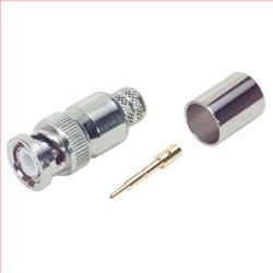 This BNC male connector is designed for attachment to Belden 9913 cable. Belden 9913 cable is a RG8 size cable with low loss performance characteristics. This crimp style connector utilizes readily available crimp sizes of .429" for the crimp sleeve and .118" for the center contact, to securely attach to the cable. BNC connectors connect with a twist lock, making them popular for RF applications.
