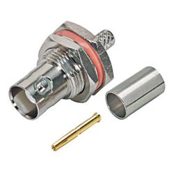 此款BNC母頭穿壁式連接器專門用于壓接RG58C/U線纜。連接器機(jī)身和隔板螺母通過機(jī)加工和鍍鎳來獲得卓越的抗腐蝕性和耐久性。中心引腳鍍金,降低接觸電阻。還提供硅橡膠O型環(huán)以防潮。
