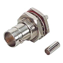 BNC压接式插座,母头穿壁式,75 Ohm,用于RG179、RG187系列线缆