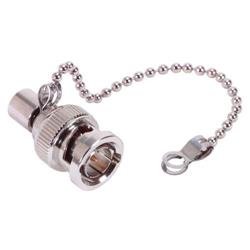 This BNC male terminator features a 75 Ohm resistance value. A retaining chain is also included to secure terminator and prevent loss.