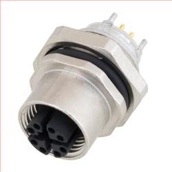 L-com offers X-Coded 8 Position M12 receptacle solutions for your enclosure, panel, rack or other design application. These quality constructed M12 connectors provide years of trouble free use even in the most trying applications. The IP67 qualified receptacles are fully shielded and rated for up to Category 6a applications. Available in front or rear mounting styles. The outer connection is an M12 X-Code receptacle and the internal connection is solder/PCB mount style. Contact us with your M12 application today.