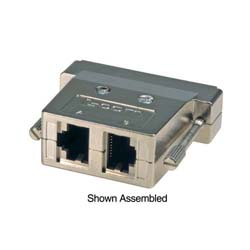L-com's exclusive new line of shielded modular to D-sub adapters utilize dual RJ45 (8x8) jacks to a single male or female DB25. Each unit is programmable to your needs by simply inserting the prepared flying leads into the appropriate positions and snapping the connectors into place. This saves time and space by using two RJ45 (8x8) jacks with one DB25 eliminating the need for multiple adapters. The fully shielded RJ connectors and internal box protects signal from EMI/RFI interference. These kits are perfect for field technicians who must determine wiring needs, or to use temporarily while waiting for a permanent cable assembly. Simplify your serial data connections today.