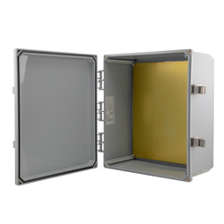 該盒子是堅固的防風(fēng)雨外殼,非常適合室內(nèi)和室外使用。由高抗沖擊,抗紫外線的聚碳酸酯材料制成,在保持最小重量的同時,提供了出色的耐沖擊性和易改性。非常適合高溫或腐蝕性環(huán)境。隨附的壁掛支架已卸載,并與其硬件一同包裝在機箱內(nèi)。一旦安裝了支架,只要使用適當(dāng)?shù)穆葆敼潭ㄔ诼葜希纯蓪⑼鈿ぶ苯影惭b到任何平坦的安裝面上。支架安裝后也可讓您使用我們的HGX-PMT立桿安裝套件。蓋子具有非金屬鉸鏈系統(tǒng),可快速拆卸,無需任何工具即可快速重新安裝。機箱帶有一對帶有掛鎖孔的不銹鋼閂鎖,可確保您防止機箱被篡改。外殼采用深灰色(Pantone 422C),此套件非常適合可能需要對外殼和安裝板進行特殊修改的定制應(yīng)用。 安裝板 NBPC141206-KIT隨附的0.1英寸厚的空白非金屬右舷安裝板已卸下并隨套件一起提供,因此您可以根據(jù)需要進行修改或安裝。 HGX-PMT系列立桿安裝套件可將組裝好的機箱牢固地安裝到各種不同尺寸的立桿上。 兼容版本包括HGX-PMT13,HGX-PMT16,HGX-PMT28,HGX-PMT29,HGX-PMT30和HGX-PMT33 *注:機箱端口(電纜導(dǎo)管連接器和N防雷器或連接器的X型孔必須正確密封,以保持NEMA 4X / IP66標準的防護等級 **注意:如果安裝了所有四個可選的有蓋螺釘,則可以達到NEMA 6P / IP68防護等級,前提是所有開口都使用IP68等級的插頭,壓蓋或耦合器正確密封。 特征