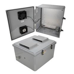 The box is a rugged weatherproof enclosure that is ideal for both indoor and outdoor applications. Constructed from High-Impact, UV Resistant Polycarbonate material that provides superior durability to impacts and ease of modification while maintaining minimum weight. It is well suited for high temperature or corrosive environments. The lid includes two vents with installed rain guards and filters. The included wall mount brackets come uninstalled and bagged with their hardware inside of the enclosure. Once the brackets are installed the enclosure can be mounted directly to any flat wall surface provided proper screws are used into secure studs. The brackets, once installed, also allow you to use our HGX-PMT pole mount kits. The lid features a non-metallic hinge system that allows for quick removal & can be reattached just as quickly without the need for any tools. The enclosure comes with a pair of stainless-steel latches with padlock eyes allowing you to secure the enclosure fromtampering. The enclosure comes in a Dark Gray (Pantone 422C) 120 VAC Mounting Plate with Lightning Protection The aluminum mounting plate features standard surge protected duplex 120 VAC outlets and a terminal block for easy hook up to the externally provided line power. In addition, the unit can accept up to two optional bulkhead-mount N-Type lightning protectors to protect the coaxial cable runs. Hot and Cold Environments To help ensure trouble-free operation of electronic equipment, proper operating temperatures inside an enclosure needs to be maintained. With the built-in Heater and Cooling system, internal temperatures can be better maintained. This model is ideal in Hot and Cold environments. The NBPC181610-1HFA2 includes two thermostat-controlled 200W (400W total) heaters. The heaters do not require the use of any of the AC outlets, leaving them all available for your equipment. No extra room for the heaters is required since they are mounted underneath the plate. For cooling, the NBPC181610-1HFA2 includes two thermostat-controlled 16.4W (32.8W total) fans. The high airflow, low noise fans allow warm air to be actively pushed out the top vent while the second fan on the lower vent actively pulls in outside air into the enclosure. Filters for both ports prevent foreign objects or debris from entering the enclosure. Like the heaters, the cooling fans do not require the use of any of the AC outlets, leaving them all available for your equipment. User Adjustable Thermostat The 1HFA2 series features an adjustable thermostat that incorporates two separate thermostats, allowing the independent control of heating and cooling. The thermostat provides a temperature range of +14°F to +122°F for the heating and +68°F to +176°F for the cooling systems. With a switching difference of 12°F ±7°F tolerance. The heat thermostat features a Normally Closed (NC) circuit. When the temperature rises to the temperature set on the heat adjustment dial the circuit opens which turns off the heater. When the temperature falls below the temperature set on the heat adjustment dial the circuit closes which turns on the heater. The cooling thermostat features a Normally Open (NO) circuit. When the temperature rises to the temperature set on the cooling adjustment dial the circuit closes which turns on the cooling fan. When the temperature falls below the temperature set on the cooling adjustment dial the circuit opens which turns off the cooling fan.