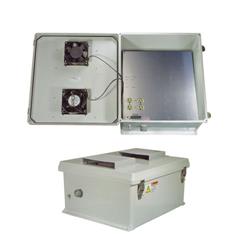 The NB201611-10F is a rugged weatherproof enclosure that is ideal for both indoor and outdoor applications. Constructed from molded halogen free self extinguishing fiberglass reinforced polyester (FRP), it is well suited for high temperature or corrosive environments. The integral mounting flange allows it to be wall mounted as well as on a flat surface without the need for extra mounting hardware. The fully gasketed lid features a stainless steel continuous hinge and stainless steel quick release latches with padlock hasps. The light grey color of the NB201611-10F is cleaner, cooler and aesthetically pleasing. Users can enjoy the physical benefits of better heat reflection and better UV resistance due to the lighter color. The contoured body provides an attractive and contemporary appearance. Due to the large size of this enclosure, it can accommodate dual sets of most access points. 120 VAC Mounting Plate with Lightning Protection The aluminum mounting plate features standard surge protected duplex 120 VAC outlets and a terminal block for easy hook up to the externally provided line power. Hot Environments To help ensure trouble-free operation of electronic equipment, proper operating temperatures inside an enclosure needs to be maintained. With the built-in Cooling Fans, internal temperatures can be better maintained. This model is ideal in hot environments. The NB201611-10F includes two thermostat-controlled 12W (24W total) fans. The high airflow, low noise fans used allows air to be pushed or pulled through the enclosure. Filters for both ports are easily removable for cleaning and replacement. The fans turns on when the internal temperature rises to 120° F (49° C) ±5° and turns off at 90° F (32° C) ±10°. These cooling fans do not require the use of any of the AC outlets, leaving them all available for your equipment. Optional Pole Mounting Kits Available on the L-com web site, these optional kits allows the enclosure to be mounted on poles ranging from 1.2 to 11 inches in diameter. For additional information and complete specifications, click on the data sheet in the Downloads tab. 特征
