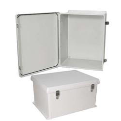 The NB series is a UL/CSA? Listed rugged weatherproof enclosure that is ideal for both indoor and outdoor applications. Constructed from molded halogen free self extinguishing fiberglass reinforced polyester (FRP), it is well suited for high temperature or corrosive environments. The integral mounting flange allows it to be wall mounted as well as on a flat surface without the need for extra mounting hardware. The fully gasketed lid features a stainless steel continuous hinge and stainless steel quick release latches with padlock hasps. The light grey color of the NB series is cleaner, cooler and aesthetically pleasing. Users can enjoy the physical benefits of better heat reflection and better UV resistance due to the lighter color. The contoured body provides an attractive and contemporary appearance. The NB series is ideal for custom applications, which may require special modifications to the enclosure. Contact L-com with your custom requirements and let us provide it for you. Integral mounting stand-offs inside the enclosure can be used for mounting plates. Blank and custom mounting plates are available from L-Com. For additional information and complete specifications, click on the data sheet link in the Downloads tab. 特征