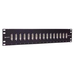 L-com's 16 port DVI patch panel is perfect for high density professional video applications. These rugged panels feature 16 gauge cold rolled steel with a black powdercoat finish providing protection from scratches and abrasions. The female to female DVI couplers support DVI-I Single/Dual Link, DVI-D Single/Dual Link and DVI-A applications.