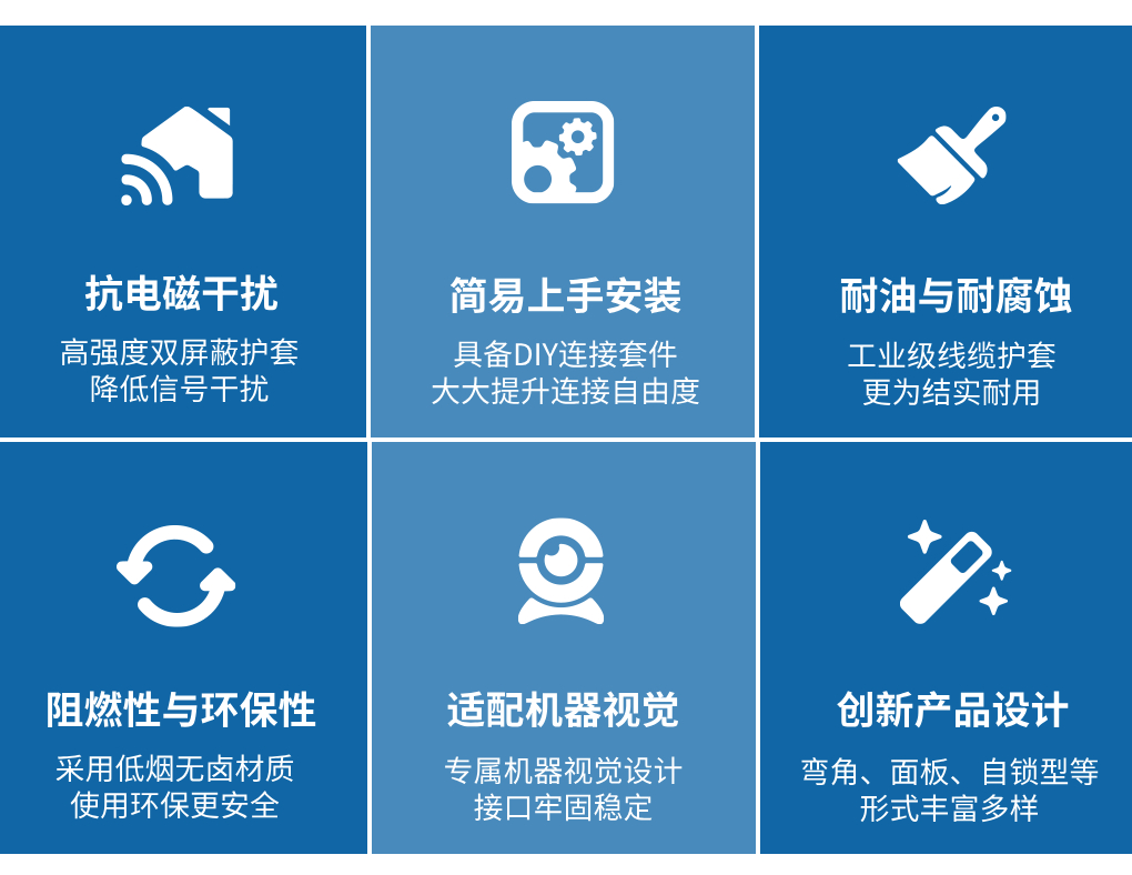 工業(yè)機器人領(lǐng)域包括搬運、焊接、清潔機器人等場景需求。針對不同機械結(jié)構(gòu)和驅(qū)動方式,L-com聚焦動態(tài)耐久性與抗干擾設(shè)計,以高柔和拖鏈屬性為核心,保障高負載場景下的信號穩(wěn)定性。 商用機器人領(lǐng)域包括運輸物流、服務(wù)型和農(nóng)業(yè)型機器人。L-com強調(diào)環(huán)境適應(yīng)性與協(xié)議兼容性,通過低煙無鹵、阻燃線纜、自鎖、IP68防水等優(yōu)勢產(chǎn)品,滿足機器人應(yīng)用的靈活部署需求。 醫(yī)療機器人領(lǐng)域包括專業(yè)化手術(shù)機器人和康復(fù)機器人等。L-com注重環(huán)境安全可靠性,以醫(yī)療級線纜和低延遲數(shù)據(jù)傳輸技術(shù),確保機器人器材的精準(zhǔn)診療與長期運行。 產(chǎn)品選型以太網(wǎng)系列USB系列D-Sub系列音頻/視頻系列同軸系列