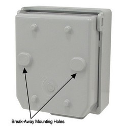 The compact weather resistant housing features a lockable hinged cover and break-away holes are provided on the rear of the enclosure for mounting. The cable grommets may be adjusted to cable size and are removable.