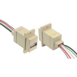 另外一個獨特的USB面板安裝方法使用戶能靈活地配置自己的組件。它設有一個穿壁式A類或B類插座,帶10英寸非端接導線。用戶可將電線切割至理想長度和硬線,或自行選擇連接器進行端接。電線是20AWG(2電源)和24AWG(2信號),并另外帶有一個24AWG電線連接到連接器外殼。該組件使用了幾乎在任何面板厚度中可以使用的受歡迎的ECF型外罩。L-com可以在適度最低要求下定制端接這些引線。必須單獨購買推薦的4-40安裝螺釘(P/N ECF440)。